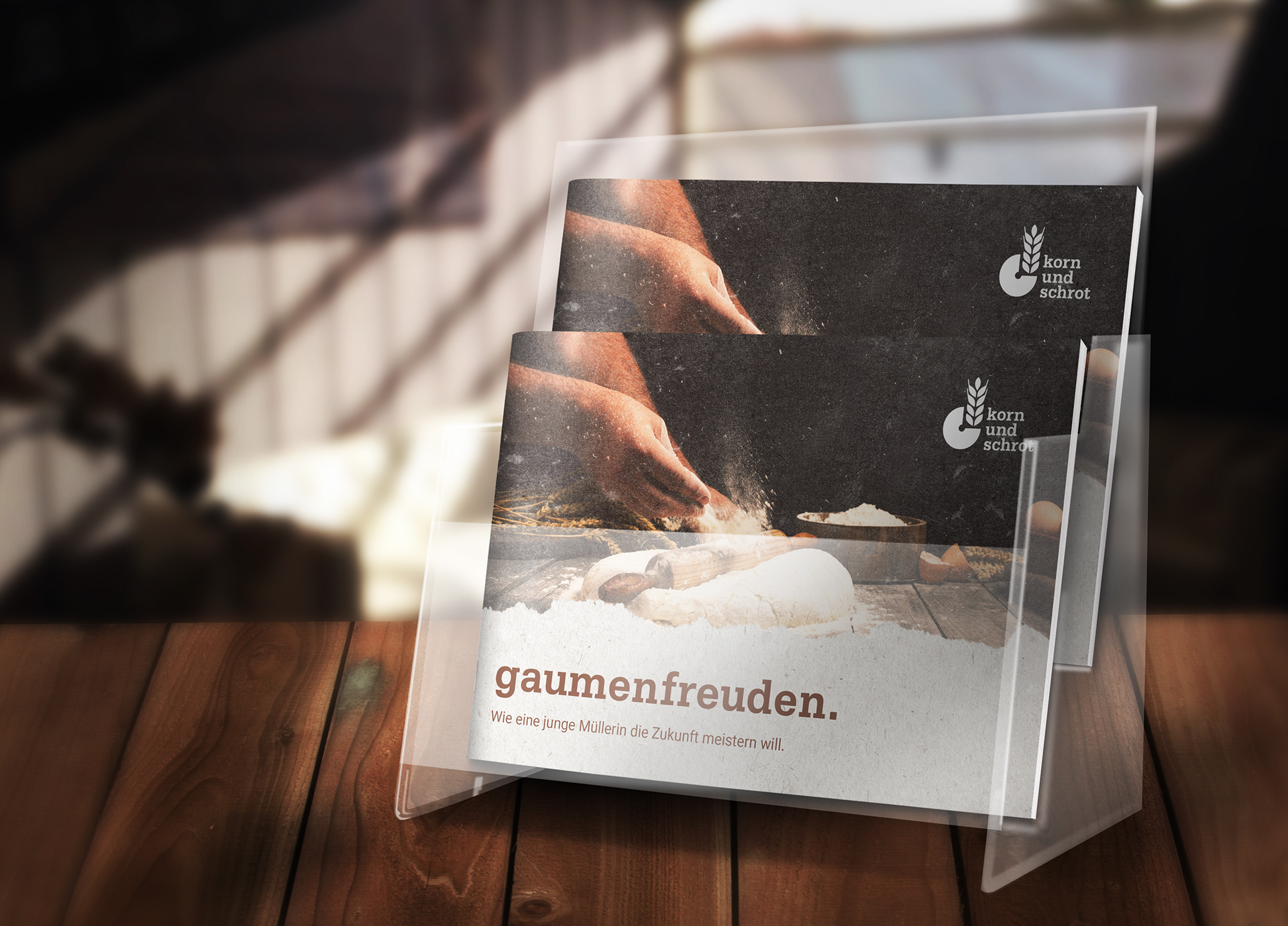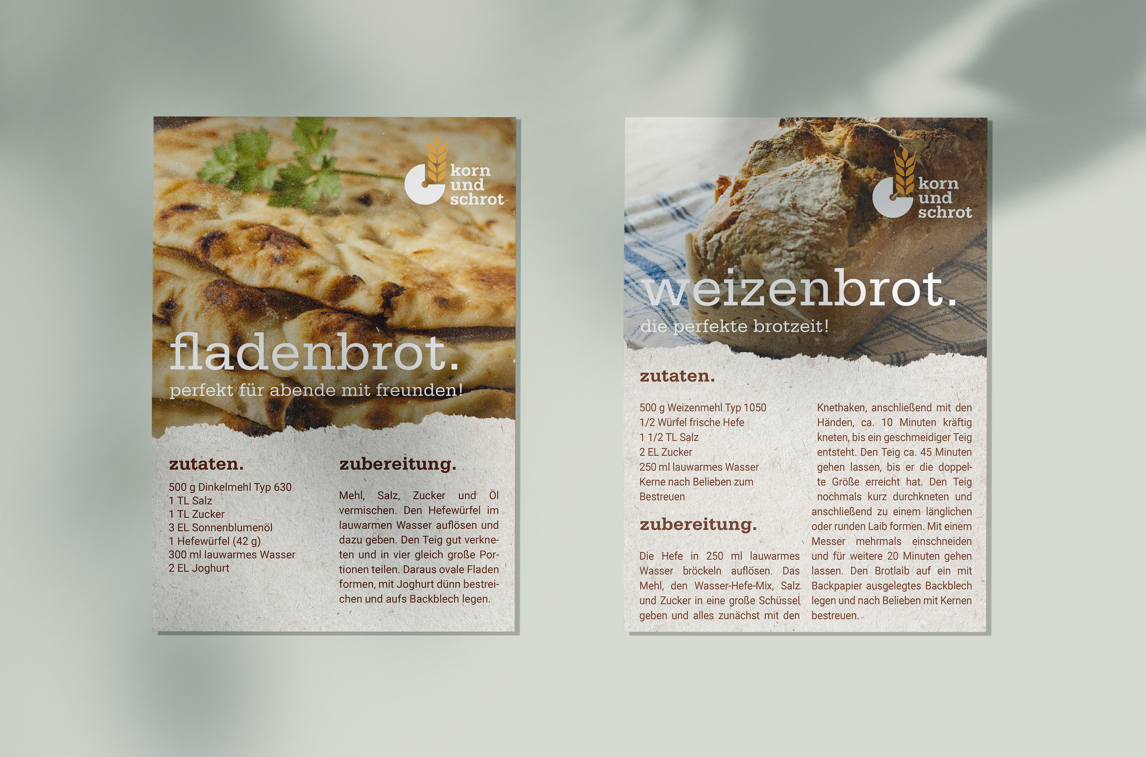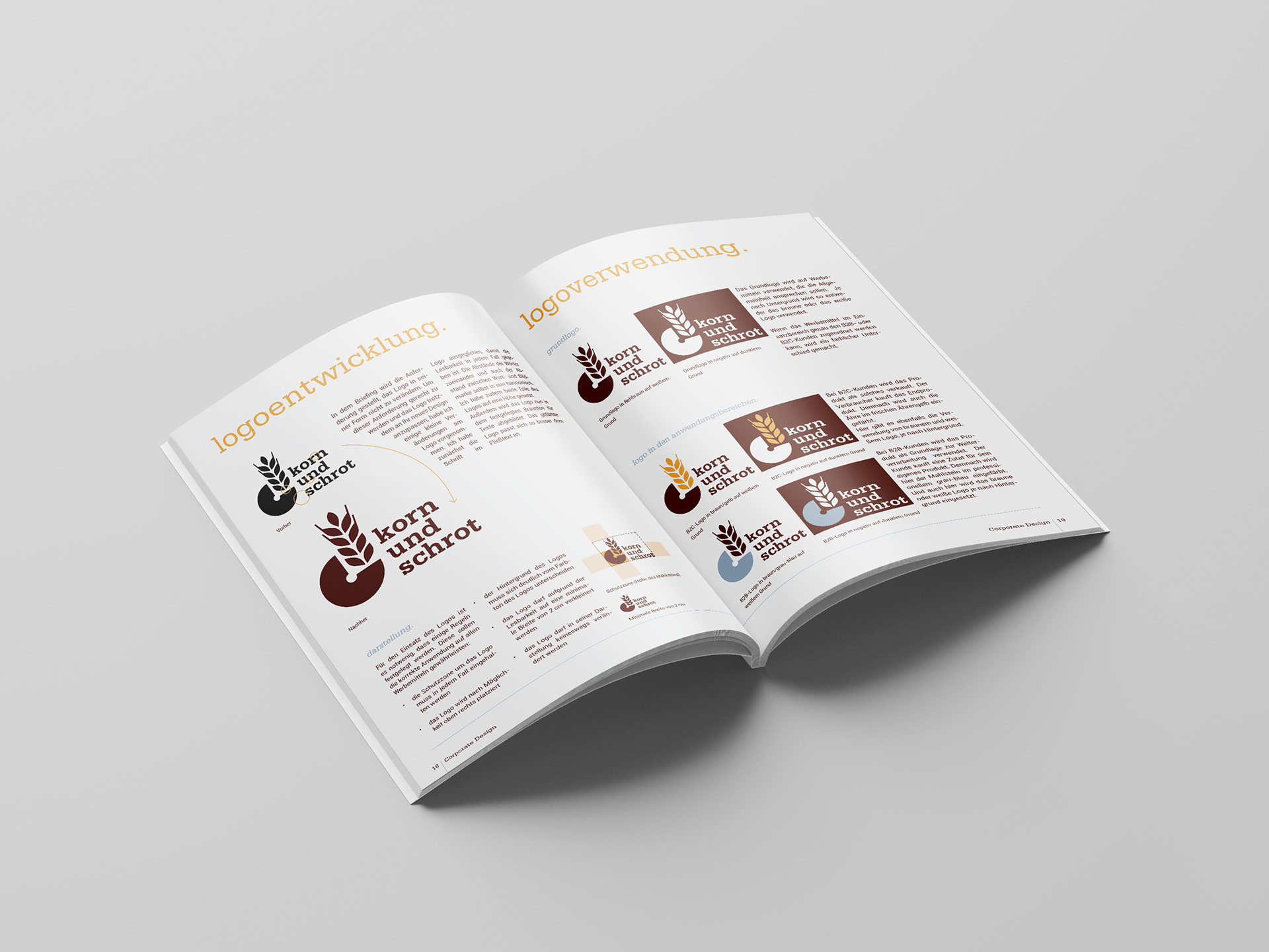 Die Abschlussprüfung der MediengestalterInnen Fachrichtung Konzeption und Visualisierung bestand darin, ein Rebranding für die Getreidemühle "Korn und Schrot" zu erarbeiten. Dies beinhaltete ein Corporate Design Manual, eine Kundenpräsentation und abschließende Marketingideen für die Weiterentwicklung der Marke.