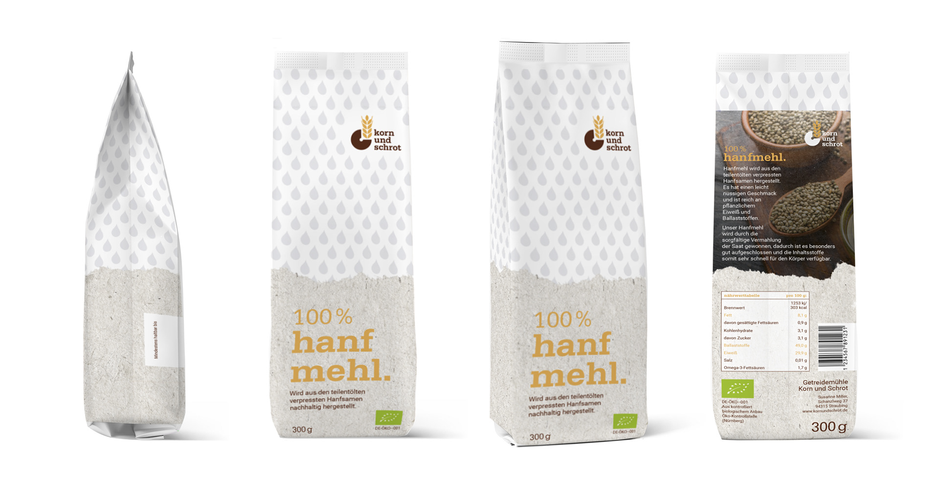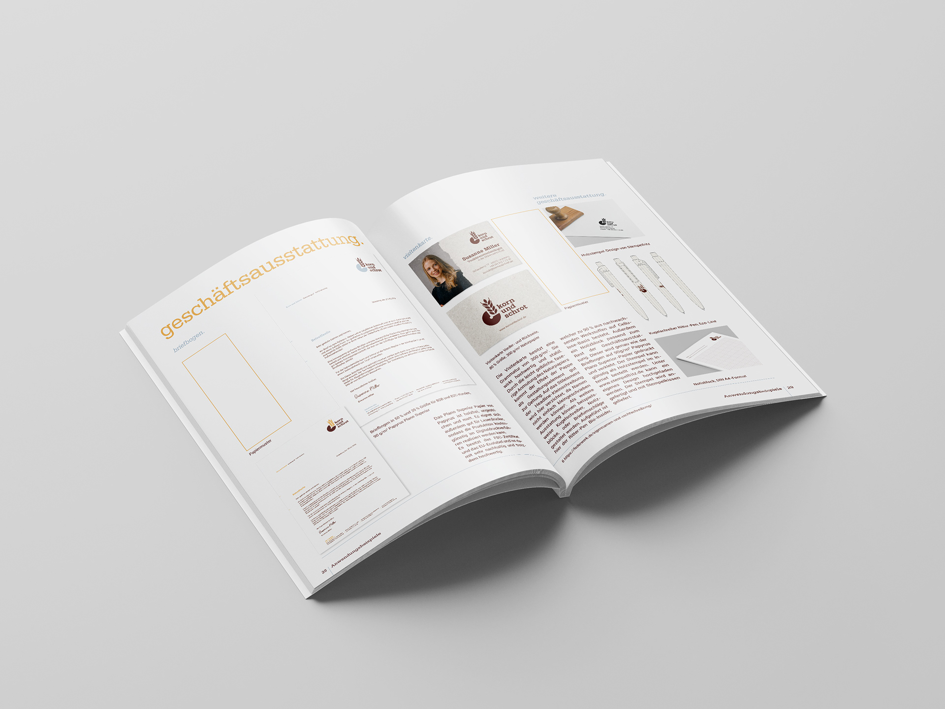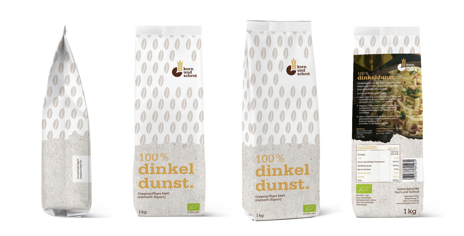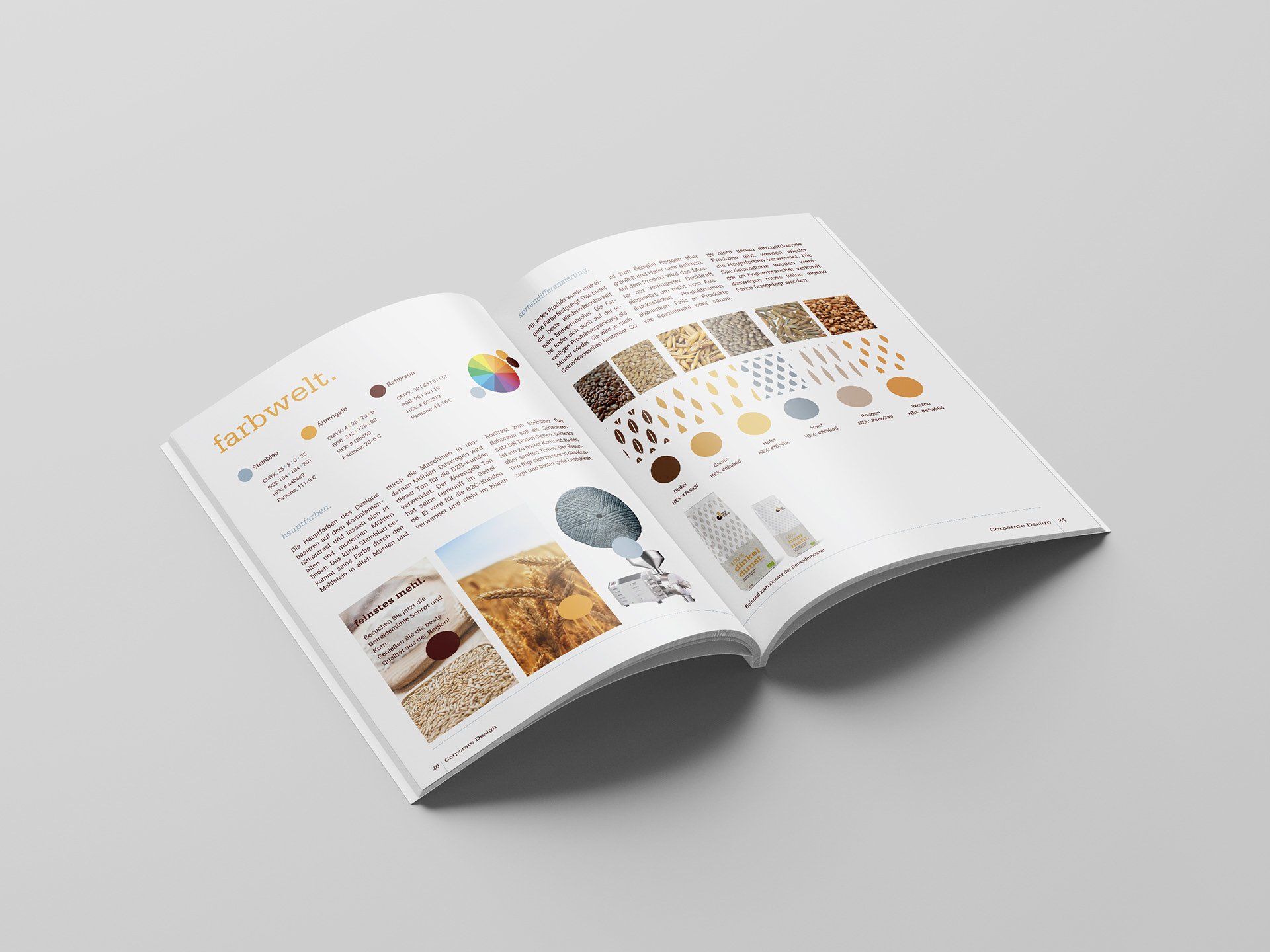 Die Abschlussprüfung der MediengestalterInnen Fachrichtung Konzeption und Visualisierung bestand darin, ein Rebranding für die Getreidemühle "Korn und Schrot" zu erarbeiten. Dies beinhaltete ein Corporate Design Manual, eine Kundenpräsentation und abschließende Marketingideen für die Weiterentwicklung der Marke.
